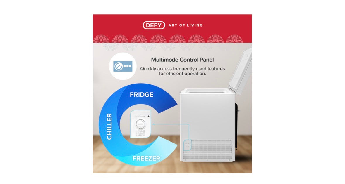 Maximise your food storage and minimise your energy bills with the Defy 195L Multimode Chest Freezer (DMF470). Designed for South African homes, this versatile deep freezer features Chill-In Technology to keep food frozen for up to 36 hours during power outages—perfect for load-shedding resilience.