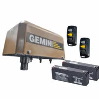 The GEMINI 24V DC swing gate motor is a self-contained unit, which comprises of a single 24 Volt direct current electrical motor that drives the gearbox. The electrical motor, carrier bearing and associated components are mounted in a rust treated base box which then gets mounted on top of a pedestal.