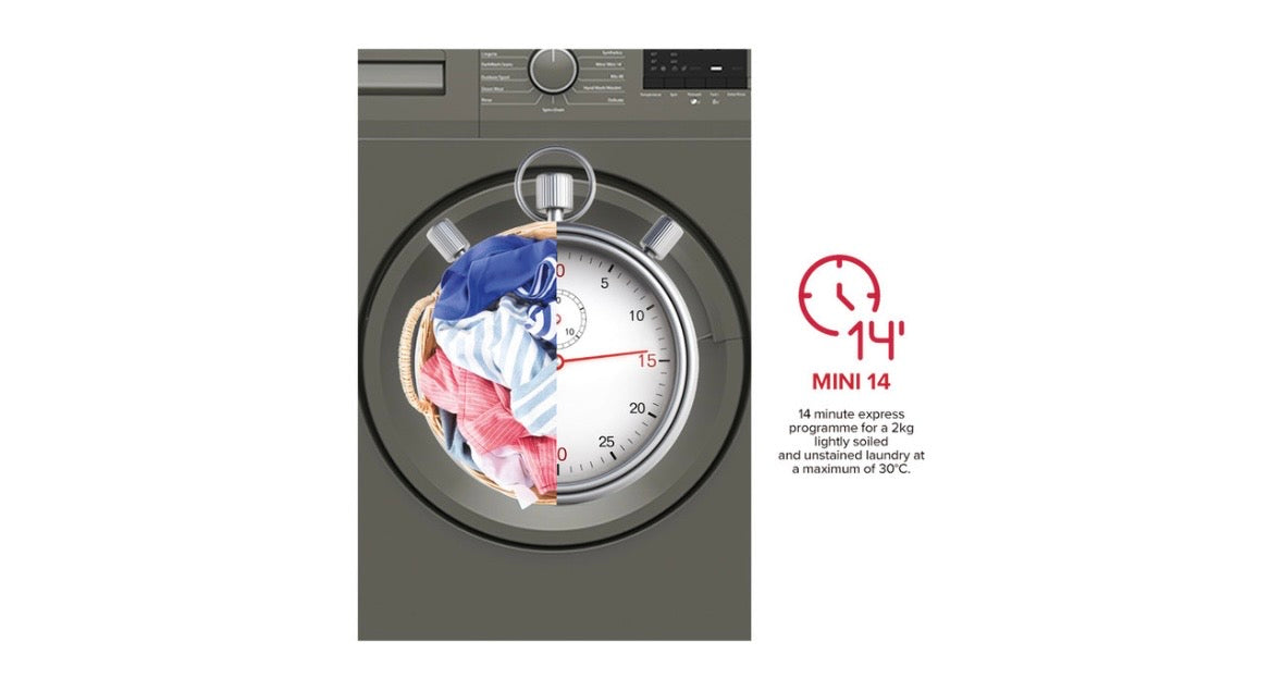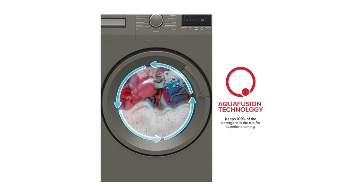 • Features: Outdoor/Sports Program, Mini 14 Program, 15 Wash Programs, 45L Rated Water Usage, Aquafusion Technology, 1200 RPM Spin Speed, A+++ Energy Rating, LED Display